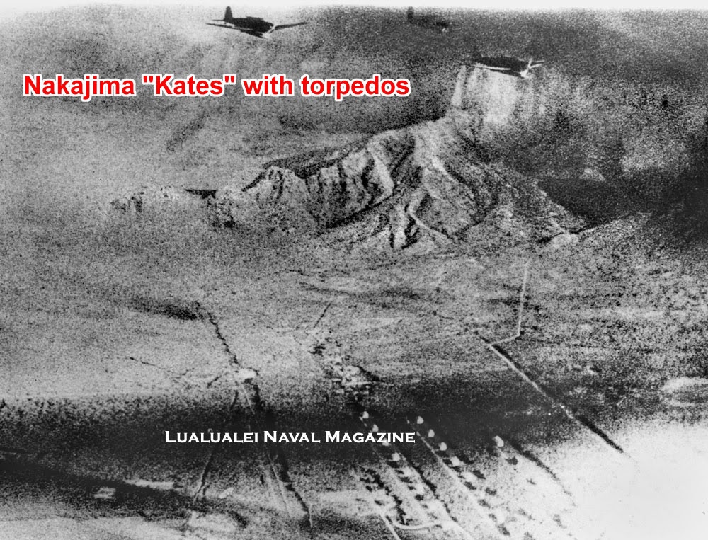 Japanese photo of Nakajima Kates with torpedoes flying inbound over Lualualei heading towards Ewa where they would fly past Ewa Field and over Ewa Plantation villages, as witnessed by numerous village residents, Sergeant John Hughes, and is included in the Ewa Battlefield report.