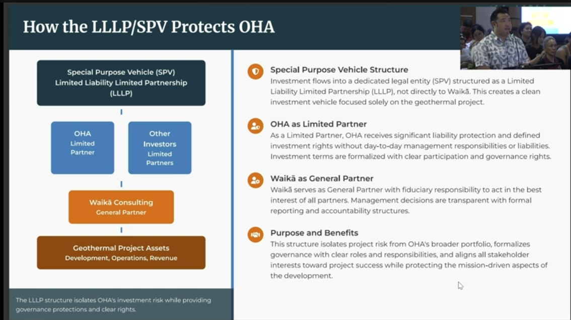 The last (time a) geothermal ‘investment’ by (was vacuumed out of) OHA in 2013, which also involved people related to Waikā, was a flop after Hawaiian Electric Co. rejected the project’s bid….