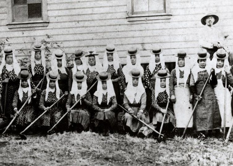 Japanese immigrant women who worked in the Hawaiian sugar cane fields, 1919. University of Hawaiʻi – West Oʻahu Center for Labor Education and Research